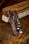 Our main focus is on leather quality. For the manufacturing of our belts, wallets, bags and other accessories we only use full-grain leather. This type of leather was not been sanded, buffed, or snuffed to remove imperfections or natural marks on the surface of the hide (as opposed to top-grain or corrected leather), so the grain has not been altered. The grain allows for fiber's strength and durability.